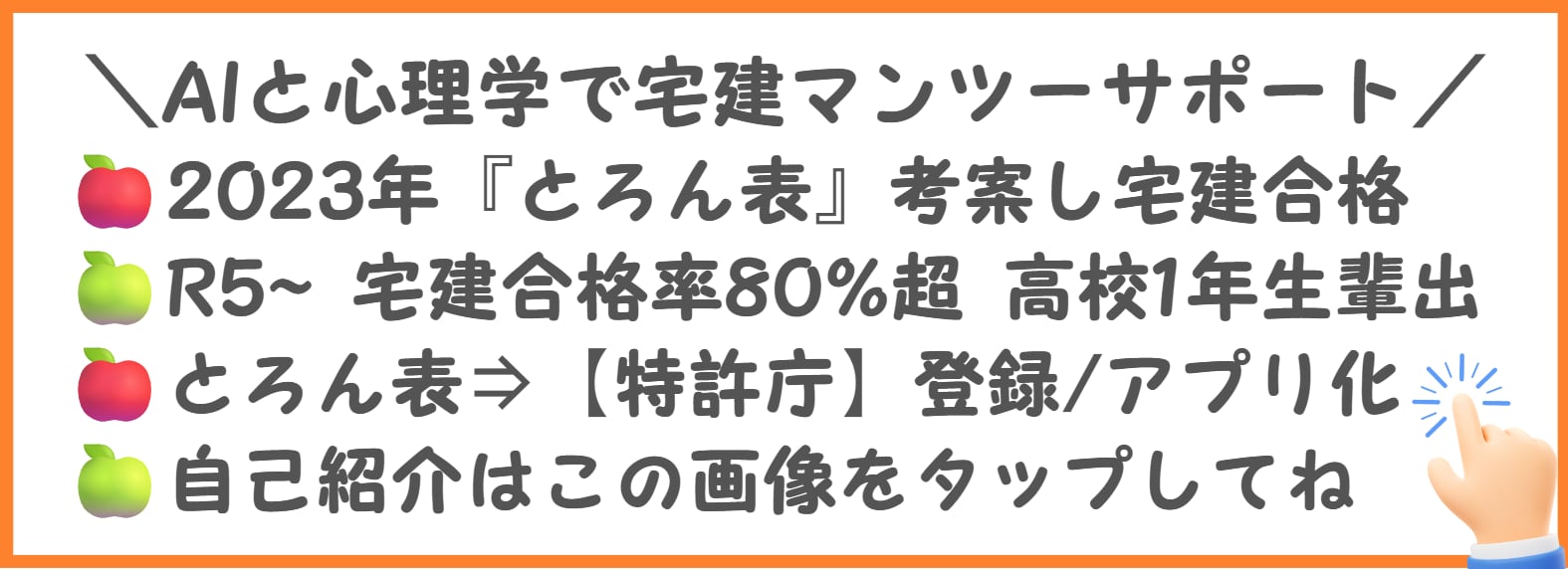 【商品概要】 「解説を読んでも、その意味がわからず手が止まってしまう……」 「誰かに聞きたいけれど、夜中だし相談できる相手がいない……」 そんな独学特有の「一人で悩む時間」をなくしたいと思って作った資料です。 お手持ちのスマートフォンに無料のAIアプリ(ChatGPTやGemini)を入れ、本書の「指示文(プロンプト)」をコピーして使うだけで、あなたのスマホが法律の専門知識を持った優秀な家庭教師に早変わりします。 この資料で解決できる「3つの具体的な変化」 1. 難しい法律用語を、日常の言葉へ一発変換テキストに出てくる 「対抗することができない」 「解除したとみなす」といった硬い表現を、AIが噛み砕いて説明します 。 まるで隣で先生が「これって、要するにこういうことだよ」と教えてくれるような感覚で、内容がスッと頭に入ります 。 2. 複雑な人間関係を「わかりやすい物語」で整理 Aさん、Bさん、Cさんと登場人物が増えて脳がフリーズしてしまう問題も解決。 AIが状況を整理し、親しみやすいキャラクターが登場する物語に書き換えて解説してくれるので、状況を映像として記憶できます 。 3. あなたが勉強したいと思ったその瞬間に、1分足らずで回答が返ってきます 。 もう付箋を貼ったまま、明日へ先送りする必要はありません 。 もう一人で悩まないでください宅建の合格には「わからない」をそのままにしないことが不可欠です。 この資料は、AIを「物知りな新人スタッフ」としてあなたの隣に配置し、合格まで二人三脚で歩むためのマニュアルです 。 ★こんな方におすすめです ・テキストの解説が難しくて、なかなか先に進めない方 。 ・「丸暗記」の勉強に限界を感じている方。